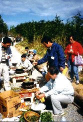 | 「たらの芽会」で天ぷらをあげているのは地元の大工さん |