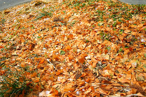 秋になると葉を落とし、地面は黄金色になります