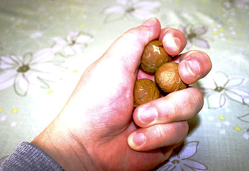 お馴染みのクルミ。食べるだけでなく、こういう風に使っている人も。 |