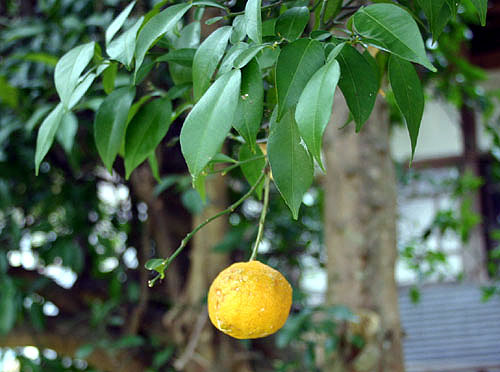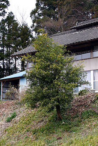 農家の庭先にあるユズ。東北でも温暖な地域で実ります。
