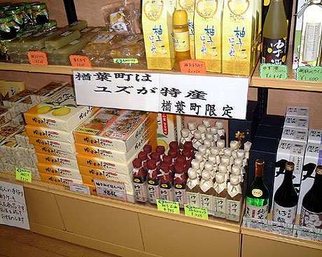 種類が多い楢葉町のユズ加工品(物産館にて)。 |