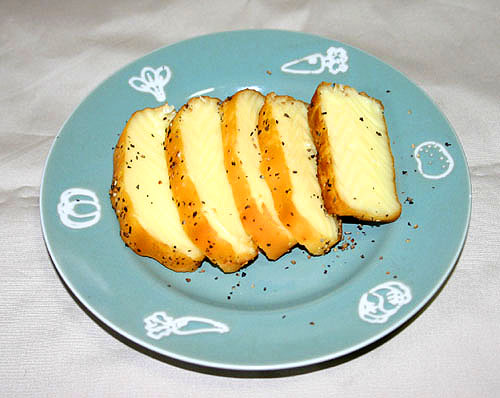 冷燻とは低温の煙でいぶす方法で、燻煙時間も長くなります。魚など生物を使う場合は下処理が必要となり、衛生の観点からも製造は冬に限られます。それを気にしなくていいのがチーズ。今回はこれを燻製にします。棒状のものが最適で、スーパーなら1本350円前後。スモークだと食べやすいので、4本くらい使いたいものです。