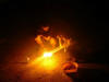 農家の庭先でも花火の真っ盛り。火を見つめ合うカップルもいます