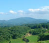 郡山駅新幹線ホームから眺めた阿武隈山系。左から@日山A移ヶ岳B鎌倉山(その東麓から都路村)C片曽根山