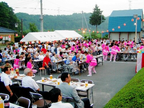 特別養護老人ホームの10年目の夏祭り。車椅子の高齢者も祭を楽しみました