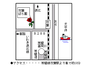 太平洋の内陸部を縦断する国道6号線の裏道・県道いわき浪江線は、県道35号線でもありますが、阿武隈の山麓を走ることから地元では「さんろくせん」と呼ぶ人が少なくありません。「さんご」と「さんろく」ではちょっと紛らわしい気もしますが、常磐自動車道との連結がよく交通量も少ないので、私たちも頻繁に利用しています。国道288号線からその県道に入ってすぐに現れるのが、今回ご紹介する「双葉ばら園」。民間のバラ園としては国内最大級で、30年以上の歴史を持つ施設です。