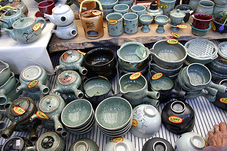 その「陶芸の杜おおぼり」の広場で、毎年5月1日〜5日のゴールデンウィークに開かれるのが「大せとまつり」(開場は8時半)。窯元の作品を一堂に集めた展示即売会で、相場大堀焼きの作品がズラリと並びます。この期間は通常より価格も安めになっており、まとめ買いのチャンス。また、うどん、そば、焼きそば、焼き鳥などのおいしいものコーナー、もちつき大会なども開催されるので、家族連れでも楽しめます。ゴールデンウィークのいい思い出になるでしょう。 |