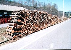 写真:都路ではシイタケ原木の搬出も大切な仕事です