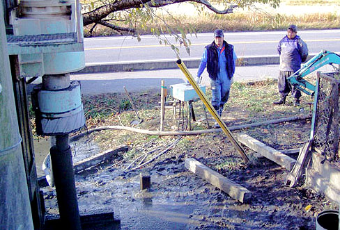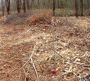 杭が見にくい場所では補助的に枝を立てて説明することも